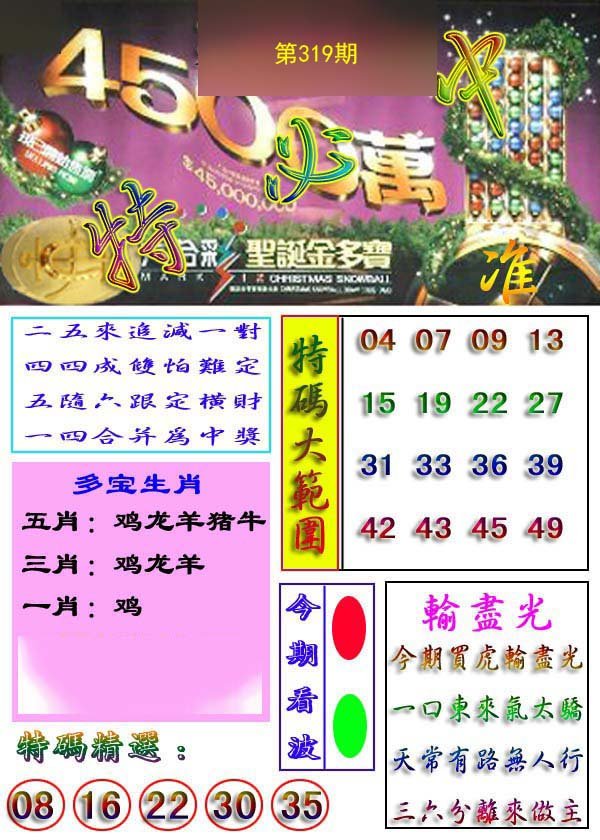 | 319期:新港澳AAAAA级【九肖十码】大胆砸 |