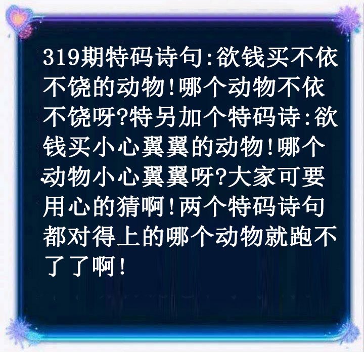 | 319期今期欲钱买无精打采的动物。 开?00准 |