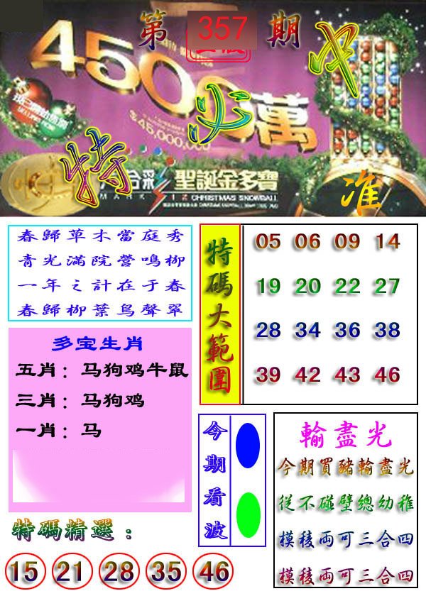 | 357期:新港澳AAAAA级【九肖十码】大胆砸 |