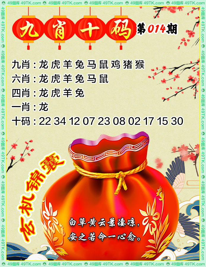 | 014期:精选九肖:兔猪鸡龙蛇虎马猴羊 |
